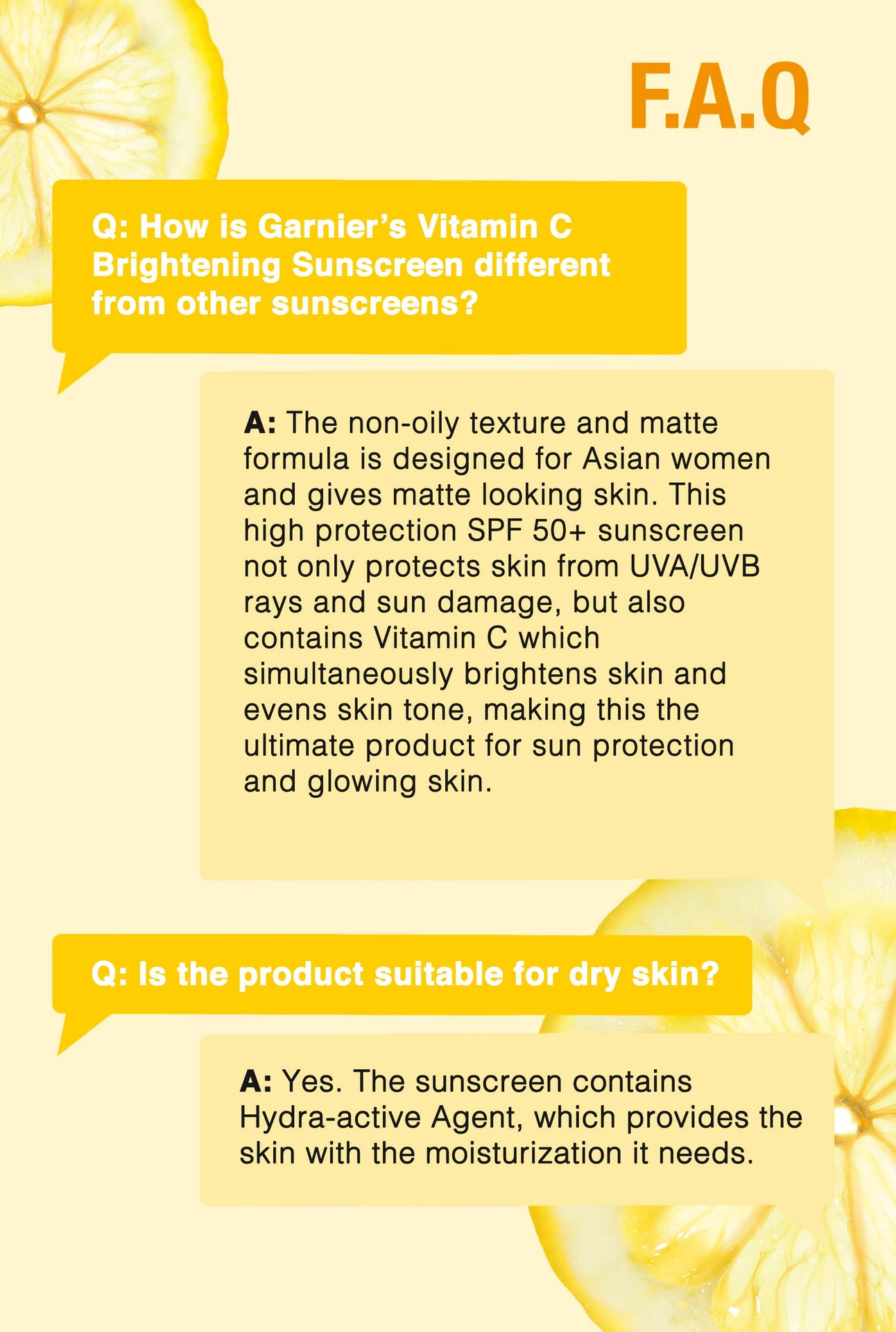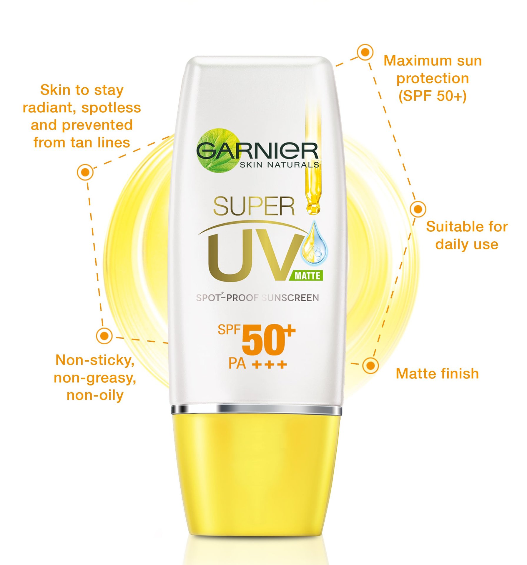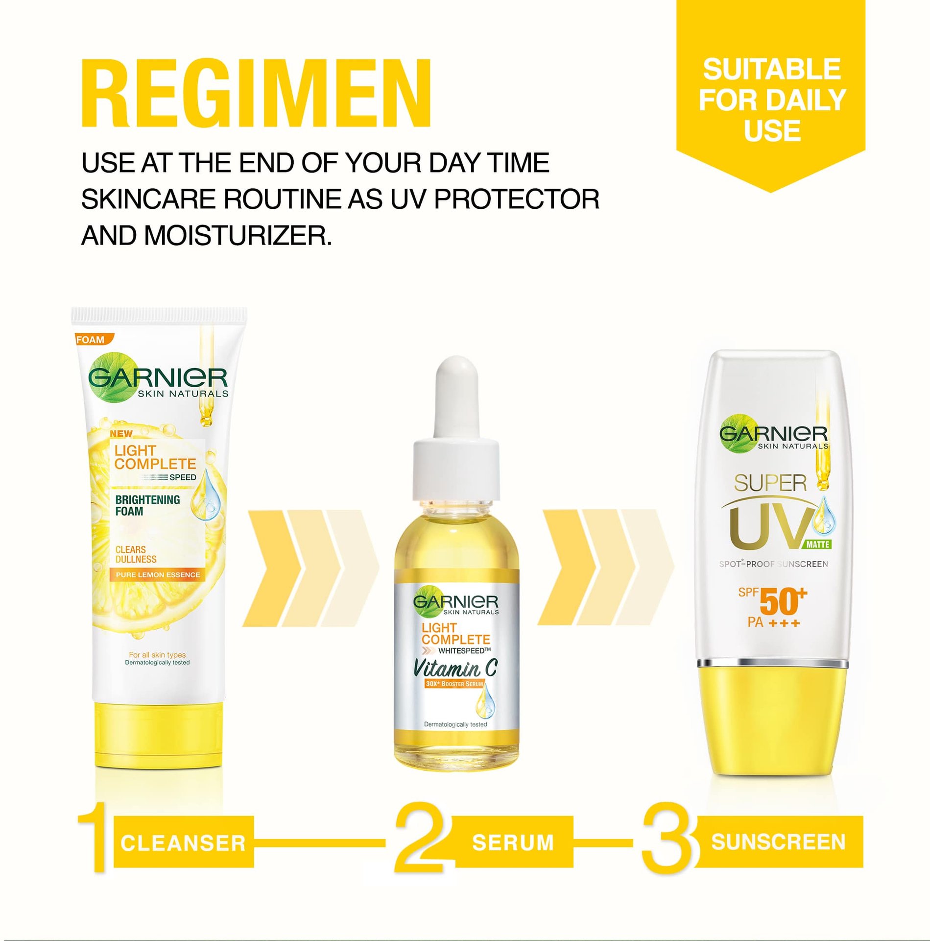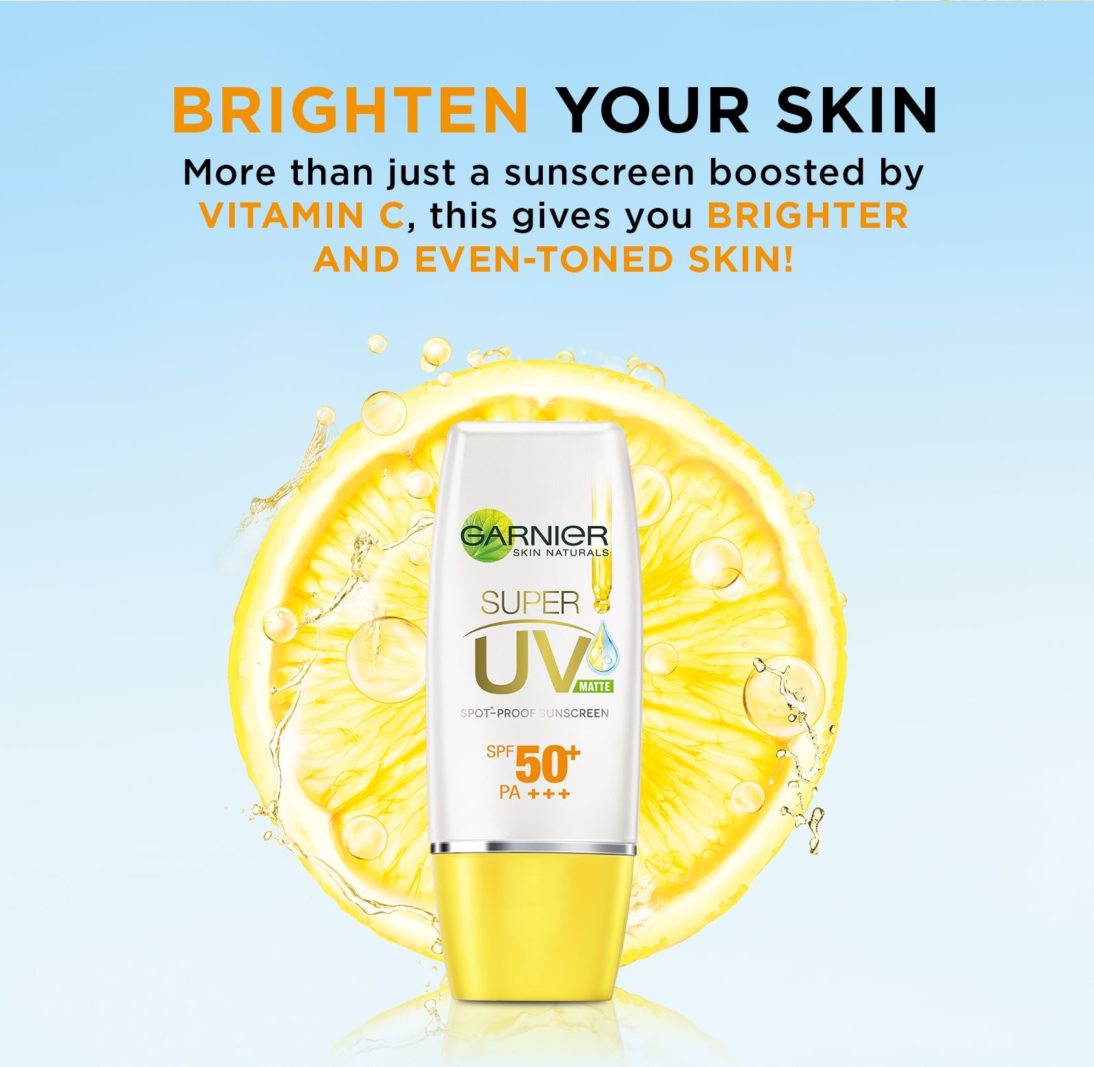 Garnier Bright Complete UV Matte Vitamin C Sunscreen SPF50: Experience the ultimate sun protection with a matte finish. Enriched with Vitamin C, this high SPF sunscreen effectively shields your skin from harmful UV rays while offering a shine-free, matte complexion.
